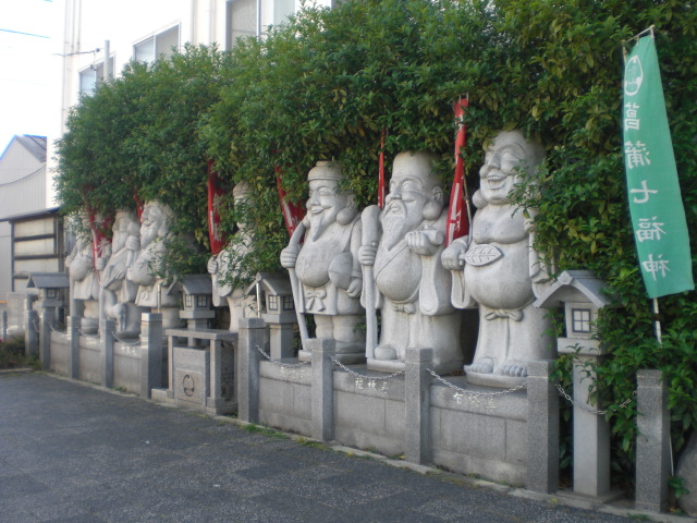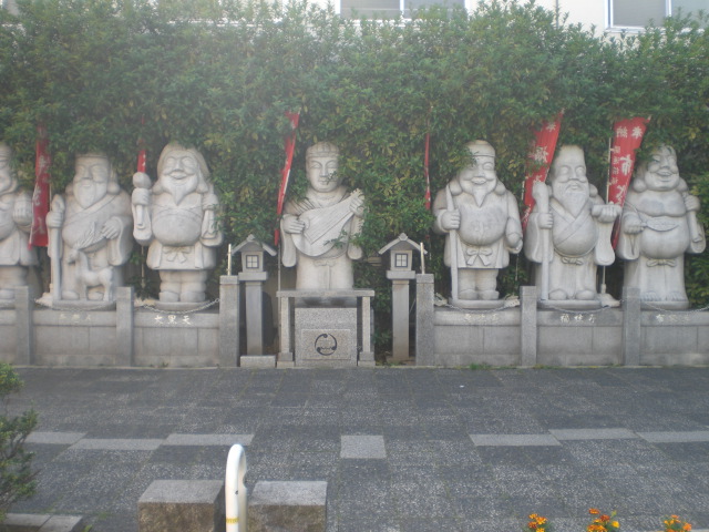 堀切菖蒲園駅から堀切菖蒲園に行く道の途中に、堀切天祖神社というこじんまりとした神社があり、その神社の東側に、しょうぶ七福神の像が置かれています。