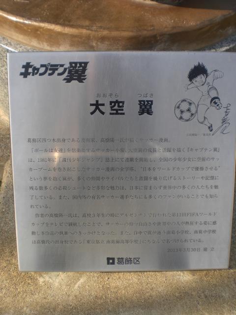 サッカーの一大旋風を起こした大空翼が、四つ木の街に大きな存在として生きています。