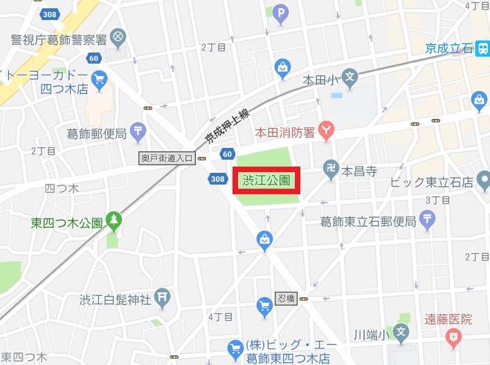渋江公園は、東京葛飾区の四つ木地区にある緑に囲まれた広い公園です。