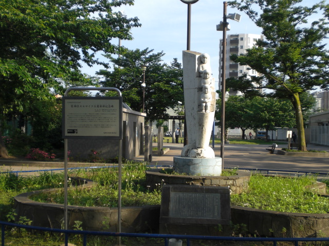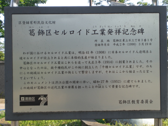 大正時代初期、この地域にセルロイド工場が創設され、葛飾の近代工業の発展を担ったとして、記念碑が建てられています。