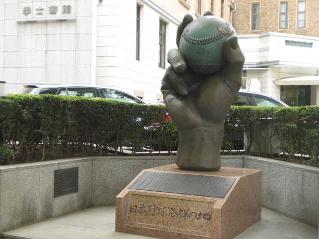 日本野球発祥の地の記念碑が、白山通りの学士会館の一角にあります。