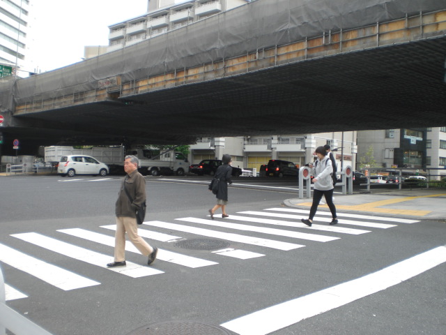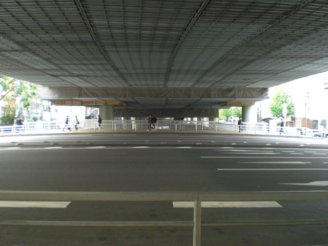 神田駅北口の道路は、国道1号線(昭和通り)と外堀通りを結ぶ交通量の多い道路ですので、新幹線、京浜東北線等、列車の運行本数の多い線路を踏切により、平面交差させるわけにいかず、線路を高架にして、道路上は、架道橋を設けています。