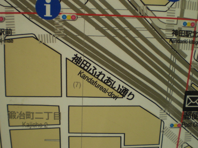 神田ふれあい通りは、JR神田駅沿いの南北にわたる商店街です。