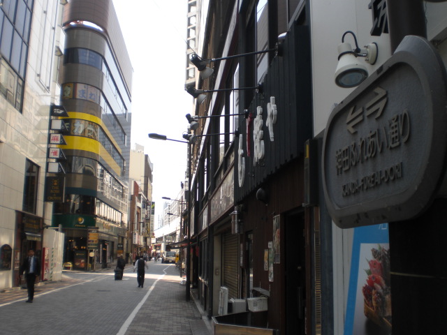 一八通りは、神田の靖国通りから斜めに延び、一八稲荷神社に向かう通りです。