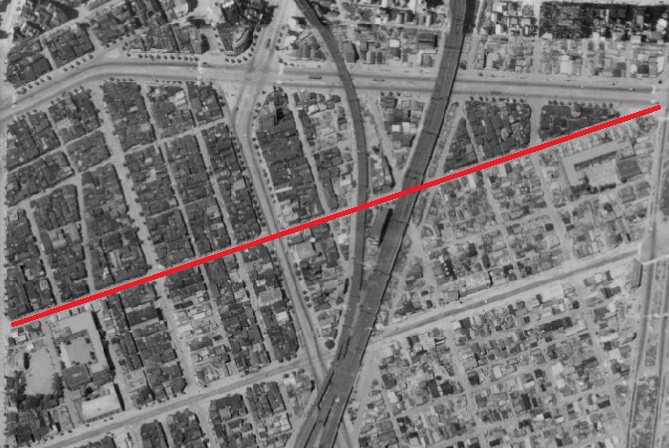 つまり、直交する架道橋からなる東松下橋架道橋とすぐ傍の黒門橋架道橋が、すぐ近くの範囲内に存在しているのです。