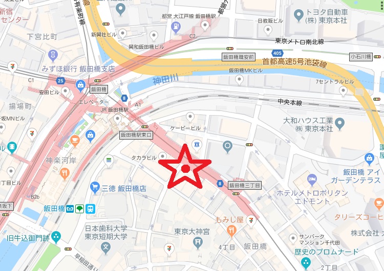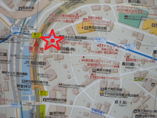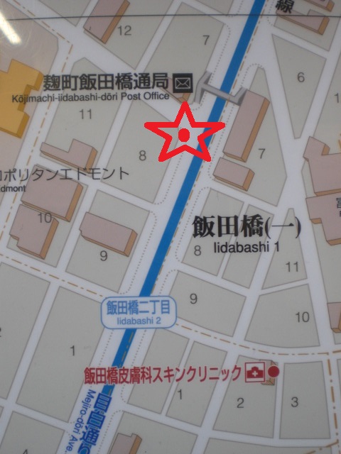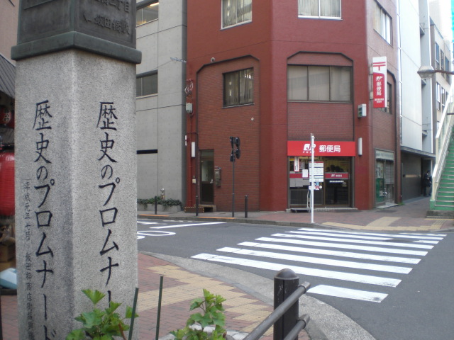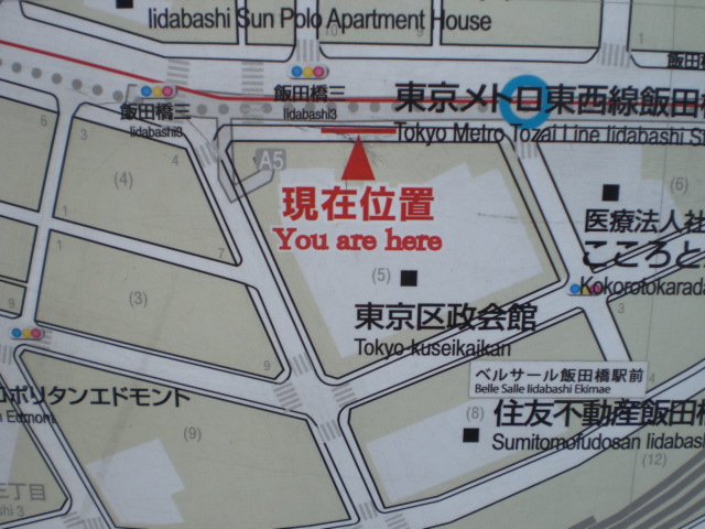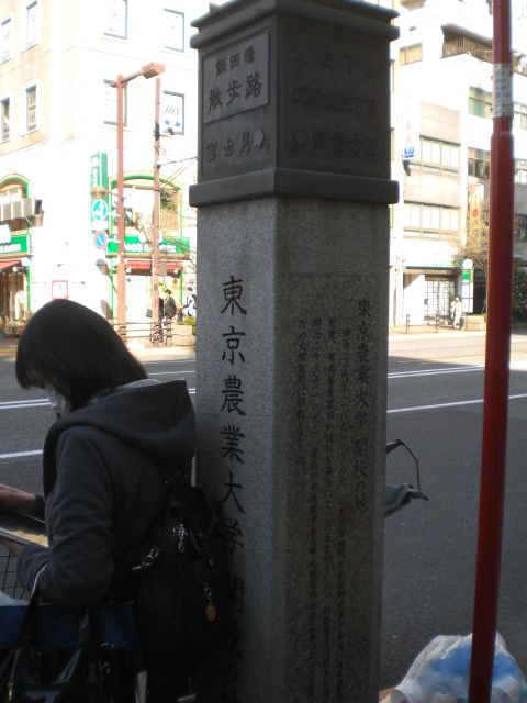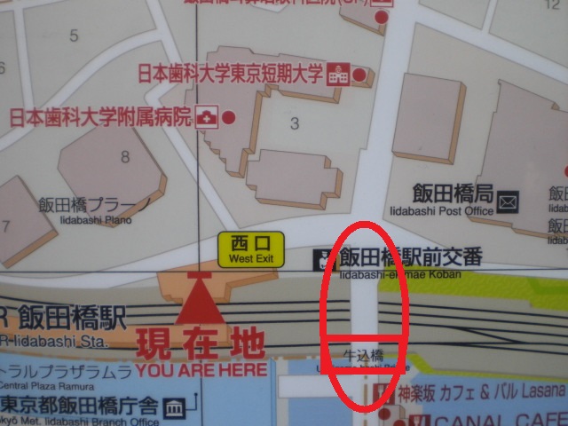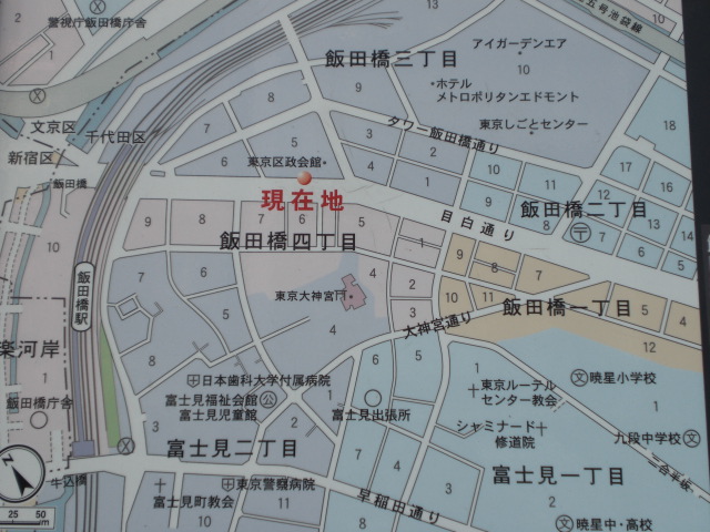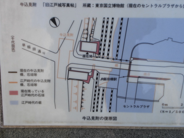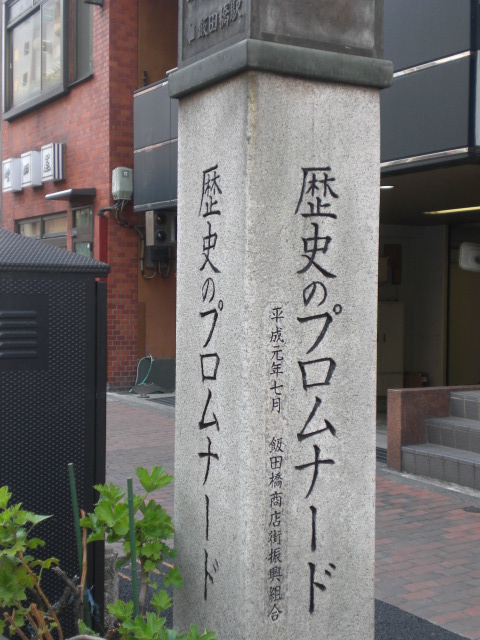 歴史のプロムナードとしての石碑は、目白通りの飯田橋第2陸橋の傍にあります。