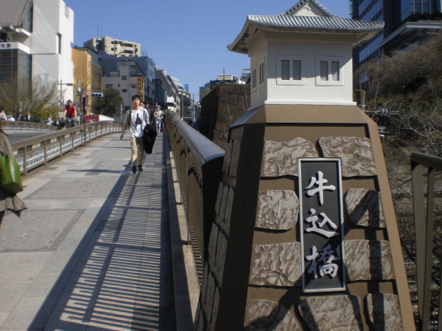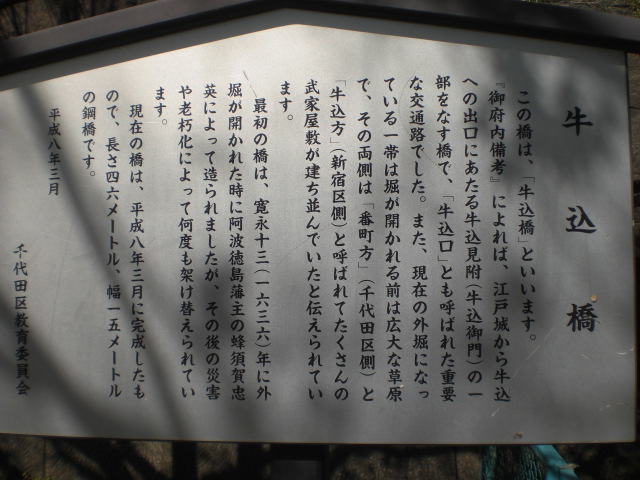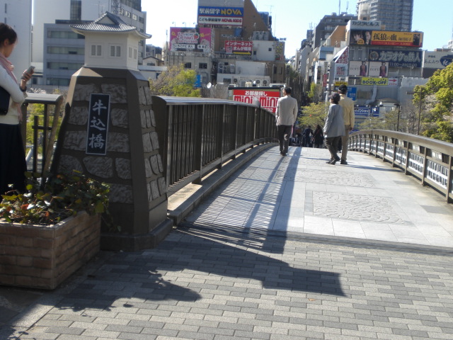 牛込橋は、江戸時代に、田安門からの道が、外堀を越える際に渡る、重要な橋でした。