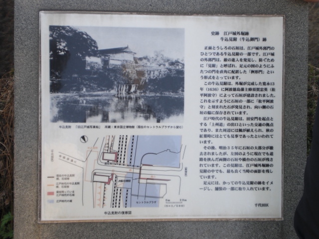 牛込見附跡の解説文によりますと、江戸城の見附(御門)が、逐次、撤去されていく中で、この牛込見附は、比較的、江戸時代の見附の状態を残していると言われています。
