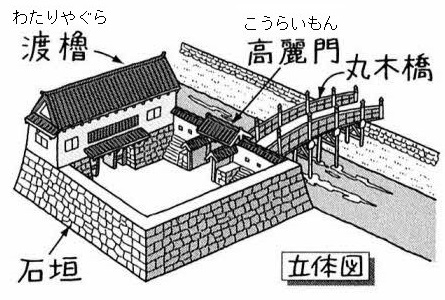 江戸時代の牛込橋は、牛込御門と一体として構成され、防御の観点から、木製の橋でした。