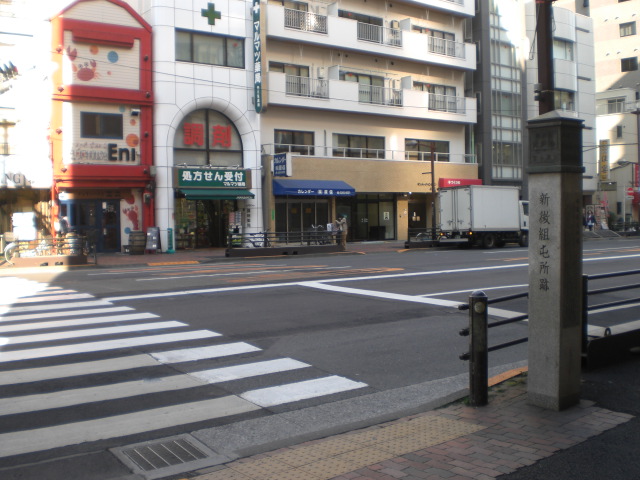 旗本屋敷跡の石碑、手水、解説板は、日本歯科大学附属病院の横に置かれています。