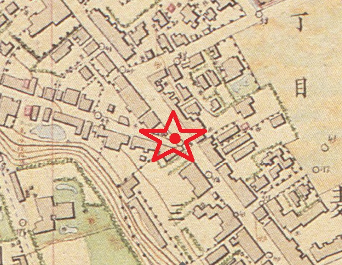 明治時代中期の地図の等高線を見ますと、やはり、高地にあります。