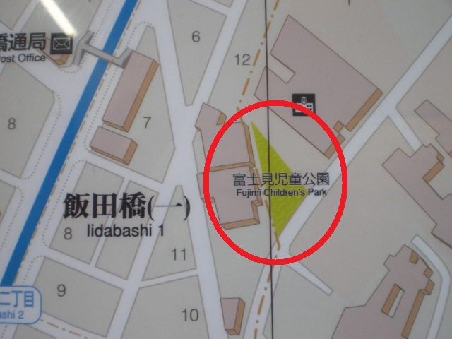 富士見児童公園は、飯田橋の大東京神宮への参道から西側に入ってた場所にあります。