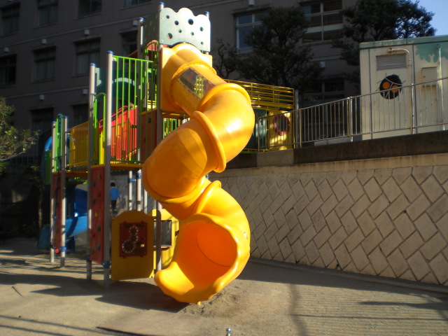 傾斜地という弱点を、公園の遊具に、うまく活用している設計には、感心しています。