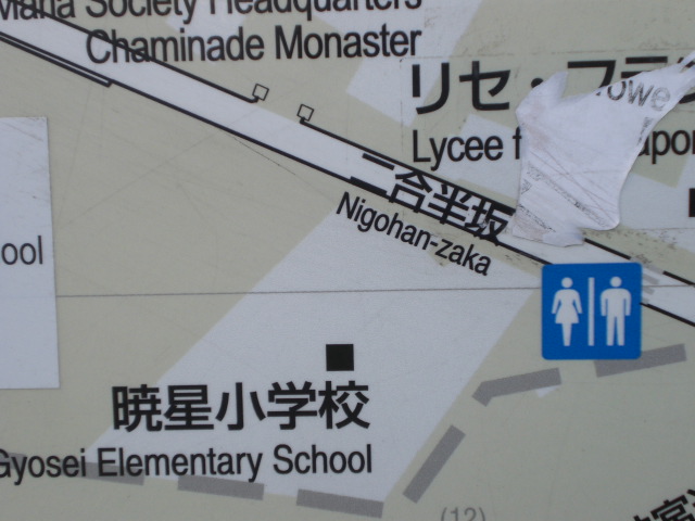 現在の二合半坂の途中には、暁星小学校の校門がありましたが、暁星中学校の標識を探し当てることができませんでした。