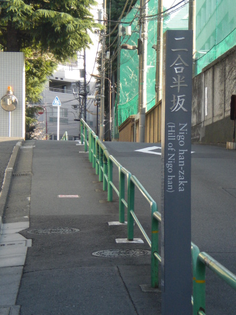 二合半坂とは、坂から山の姿が、頂上から半分(五合)とさらに半分(二合半)が見えることから、二合半と呼ばれていた坂です。