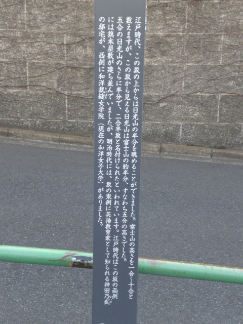 飯田橋富士見町の二合半坂は、日光山ばかりではなく、富士山も見えていたことと思われます。