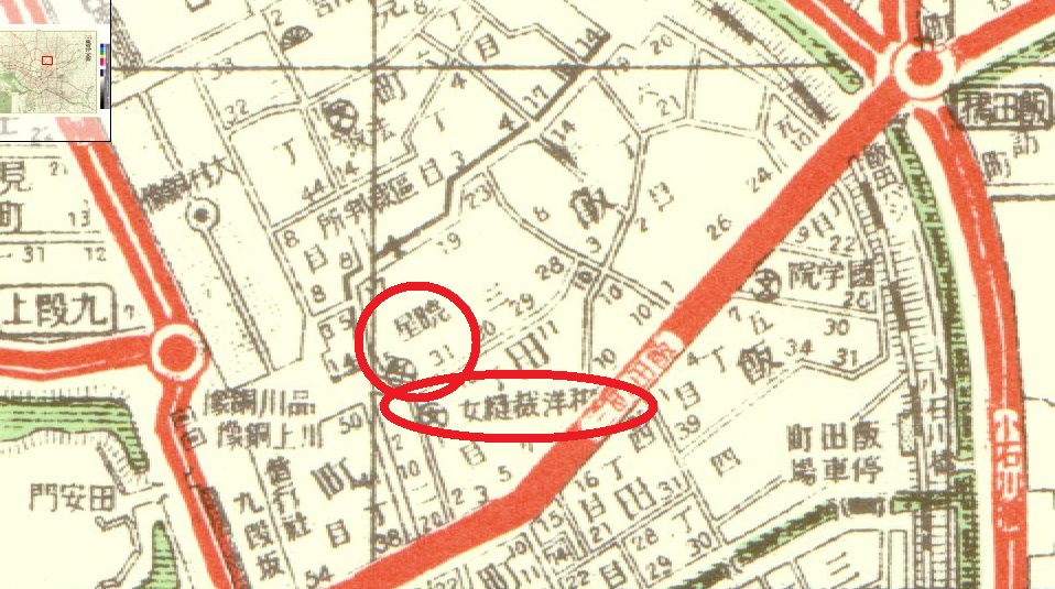 明治時代の地図には、暁星学園と和洋洋裁女学校の文字が記載されており、いずれも長い伝統を有しています。