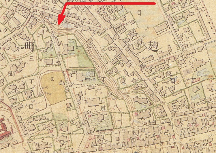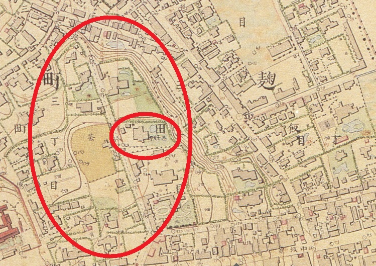 明治時代初期の地図からも理解できますが、周辺には建造物が多く建てられていたため、造成に制約があったものと推察しています。