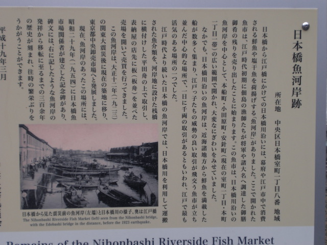 日本橋の北側に日本橋魚河岸記念碑があります。