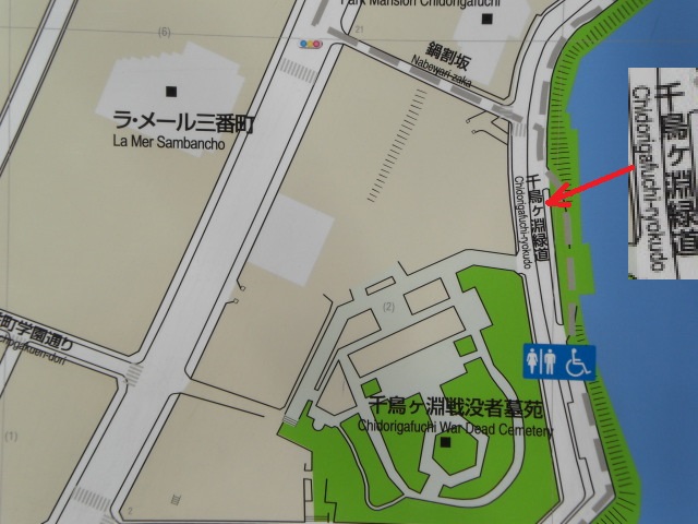 千鳥が淵緑道は、千鳥ヶ淵の霊苑の前の公園的な遊歩道を言っています。