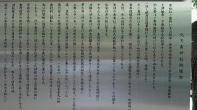 元三島神社は、元寇の弘安の役の際に、参戦する河野通有が、伊予国大三島神社に必勝祈願した後、鶯谷の地に、分霊を勧請して創建したと伝えられます。