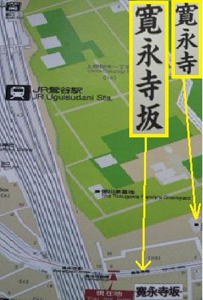 寛永寺の威光が多くの場面に行き届いていて、寛永寺坂とともに、寛永寺の名前がそこかしこに残っています。
