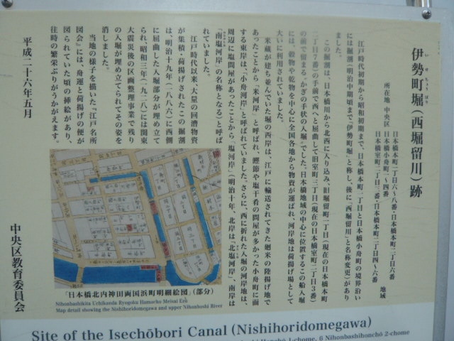 伊勢町堀は、江戸時代に、堀を利用して各種の物資が運ばれ、大変賑やかに発展していたそうです。