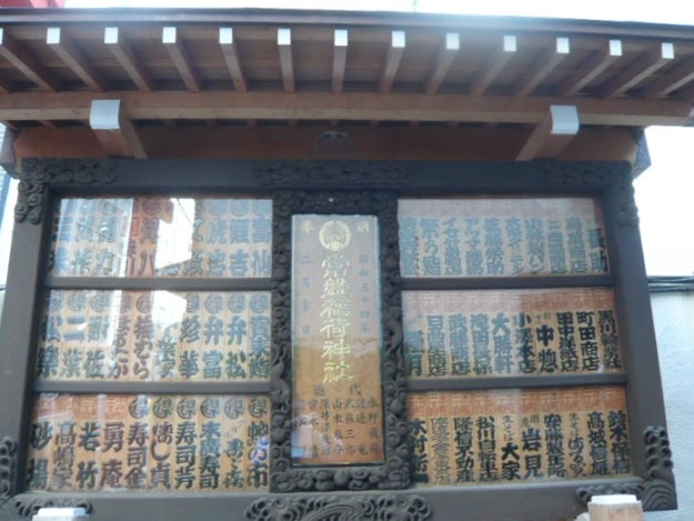 日本橋堀留町の出世稲荷神社の場所は、とても判りにくいです。路地の奥の建物の中にあります。