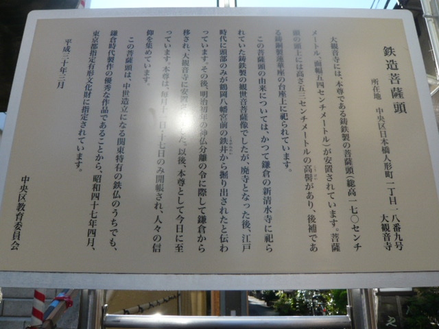 中央区の教育委員会の解説板が、大観音寺の階段の傍にあります。