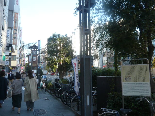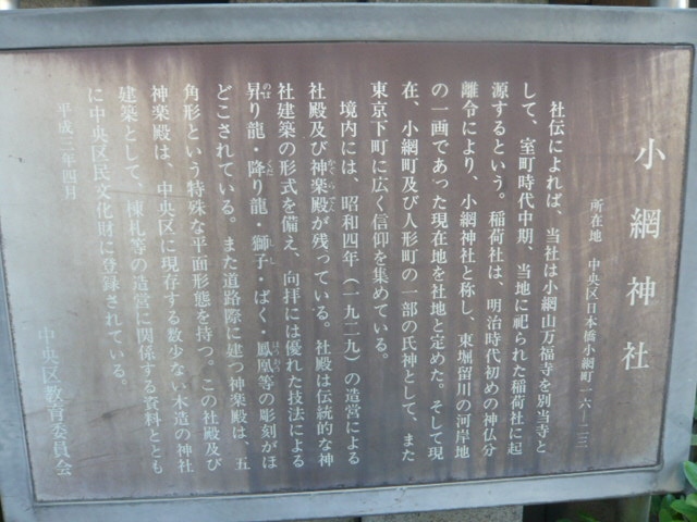 人形町通りの歩道に、教育委員会の立てた解説板が、ポツンと立っていました。