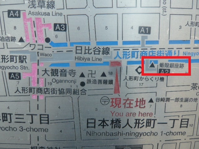江戸時代中期の寛政年間に、寛政の改革の一環として、銀座制度の粛清が行われ、幕府直営の度合いを強めた銀座が、蛎殻町、現在の人形町1丁目に再発足しました。