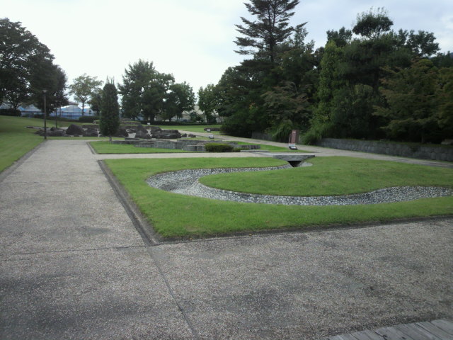 公園の中央には、石と水の流れを現しながら区画された街並みの要部が続いています。