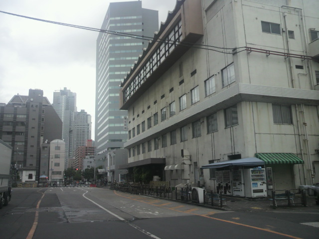 大手門橋の北端は、都営地下鉄の汐留駅と築地市場駅の中間点付近で新大橋通りに面していて、南方向に進むと大手門に至ります。