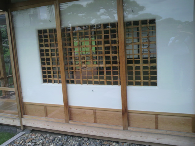 外壁は漆喰壁、内壁は色壁、屋根は数寄屋風書院造りです。