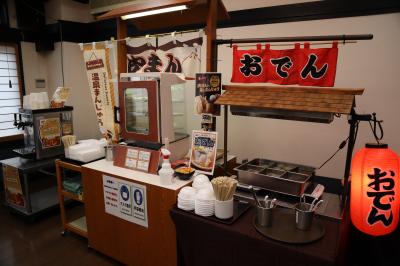 女性大浴場の内湯はプールのようで情緒がなく、露天風呂は水深がとても浅い、向こうの道路を通る車が見える(遠いけどね)、男女入れ替え制でない。露天風呂の氷瀑はツルンとした氷の壁、ライトアップを工夫したらもう少しステキなんだろうけど