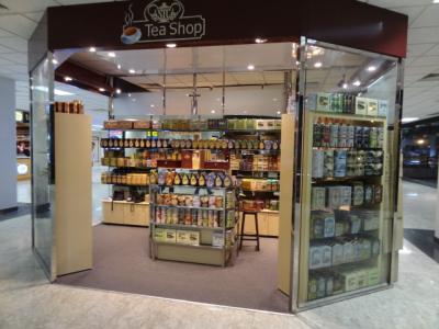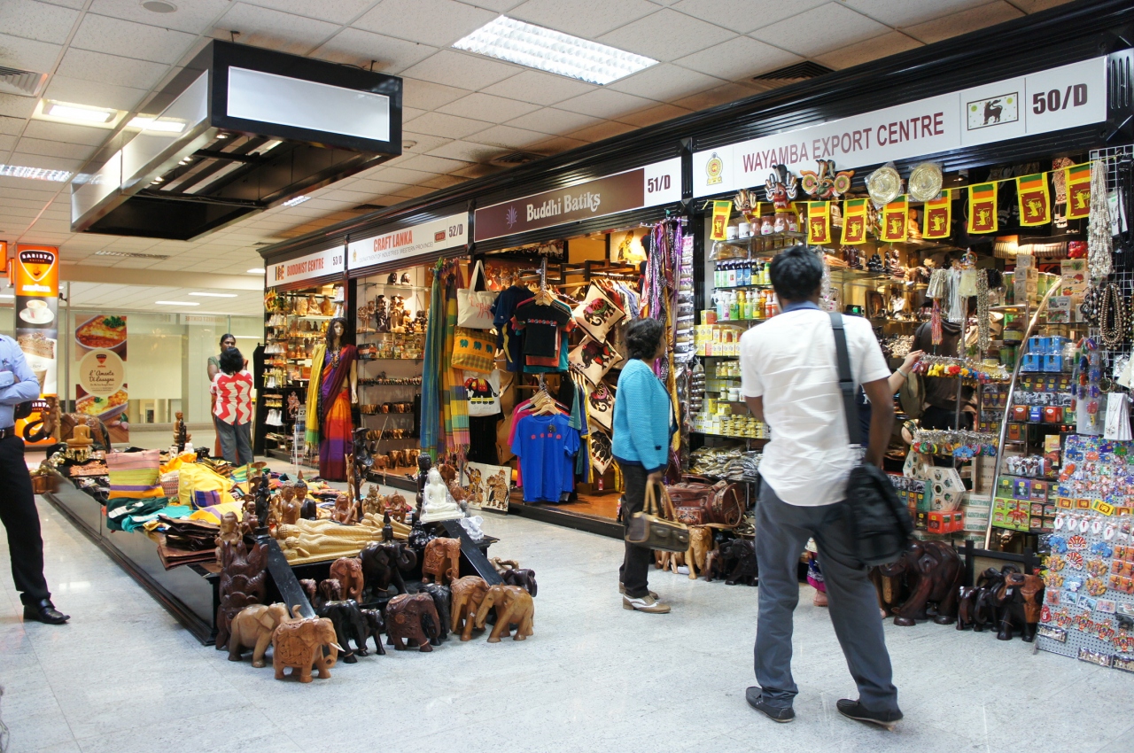 免税エリアを通り抜けて乗り継ぐ構造で、紅茶店がたくさんありました。ほかにカシューナッツ、スリランカの民芸品などが目を引きました。