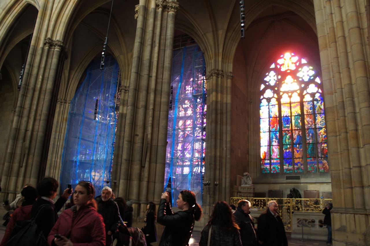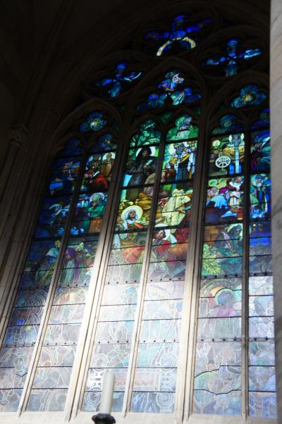 3月の午前中はミュシャのステンドグラスを見るには不向き。各施設への再入場はできません。