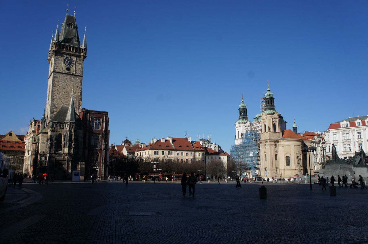 古い建物に囲まれ、屋台やカフェがあり、大道芸人がいて、いつも観光客でにぎわう場所