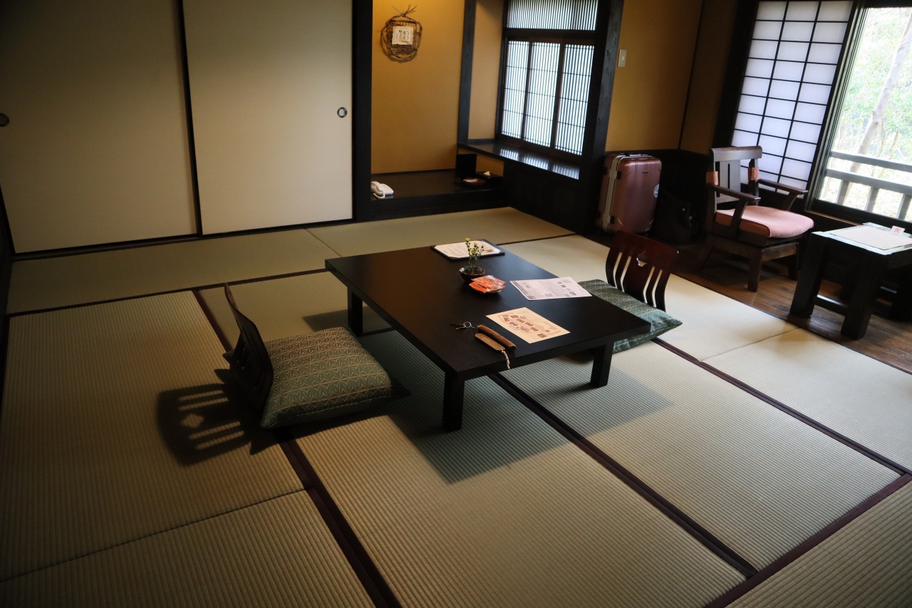 入口に下駄箱があり、館内は素足。最初は素足に抵抗があり使い捨てスリッパをもらいましたが、どこも畳なので、すぐに気にならなくなりました。
