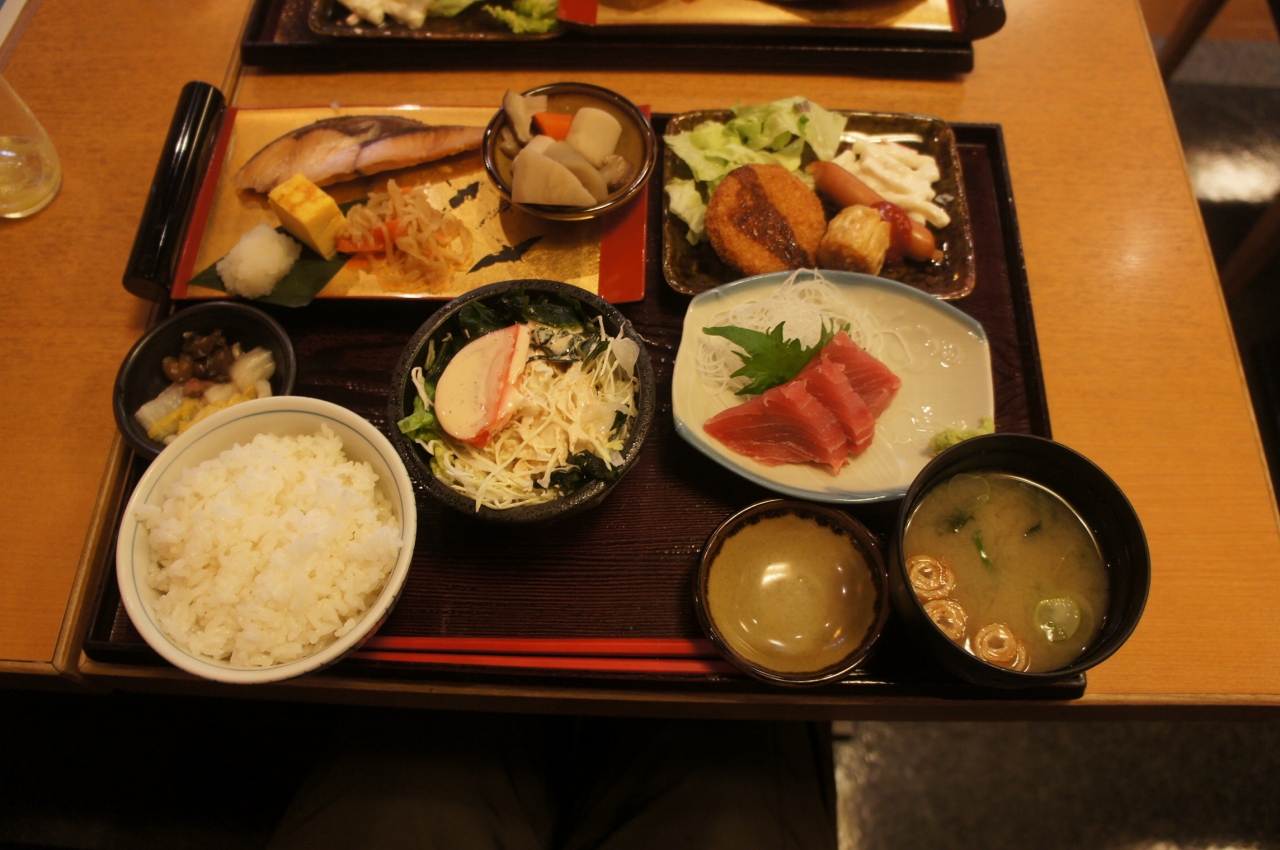 2021年2月の朝食は定食スタイルで、とりたてて美味しいわけじゃないけど刺身なんかもあってまぁ満足でした。- 旅行時期