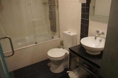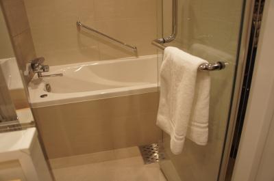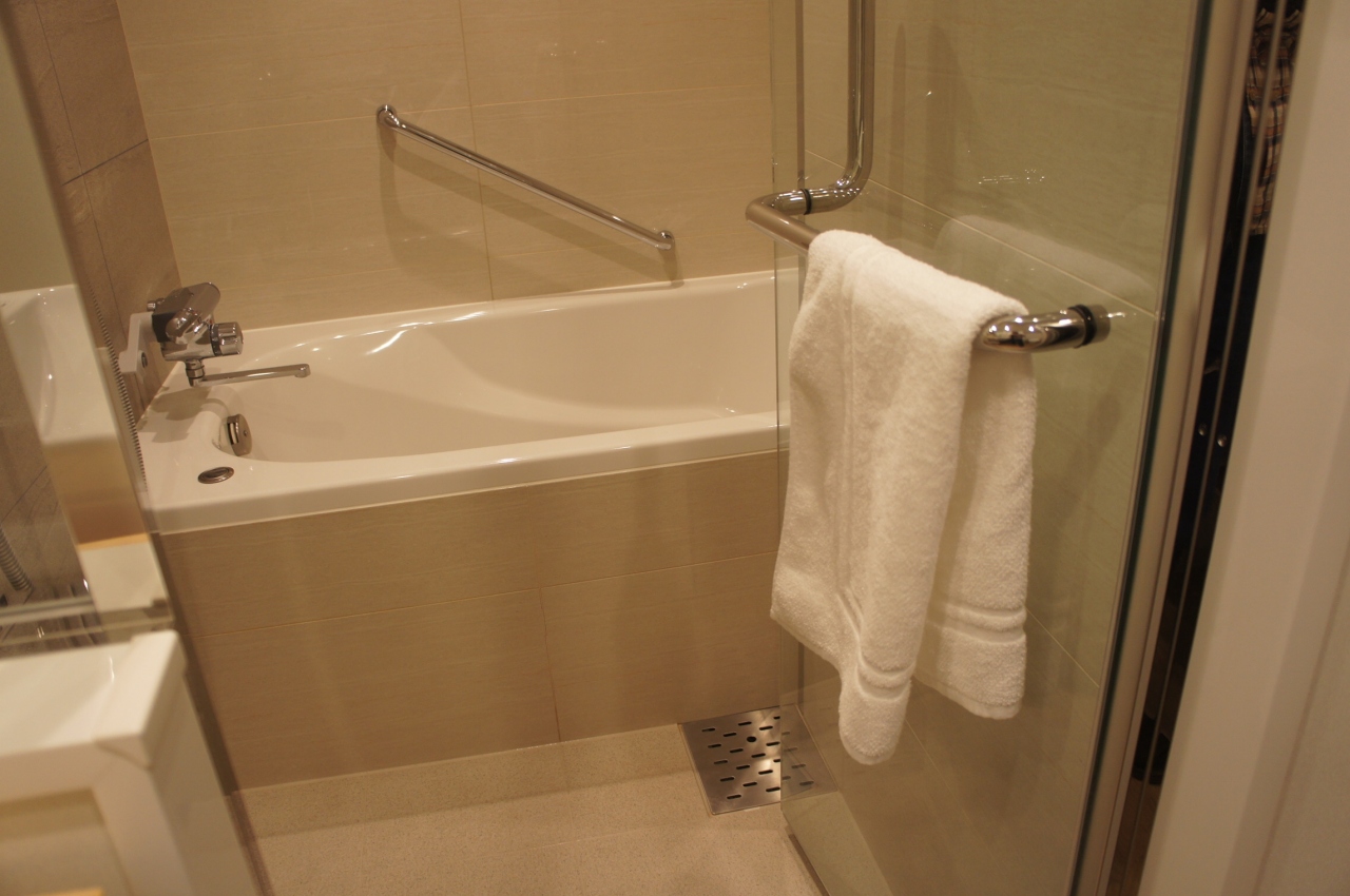 残念ながら、バスタブなしの部屋で、シャワーを浴びたら全く排水されず、フロントに掛け合うと「満室でルームチェンジはできないけど、エンジニアをよこす」というので部屋で待ってたら、Tシャツにジーンズのラフな格好の男性が来て、「what?」と聞いても返事がないので「部屋を間違えた人かな?」と思ってドア閉めちゃった。フロントからの電話で招き入れ、仕事は早かったです。排水口掃除の後、汚れを水で流してなかったのはご愛敬。