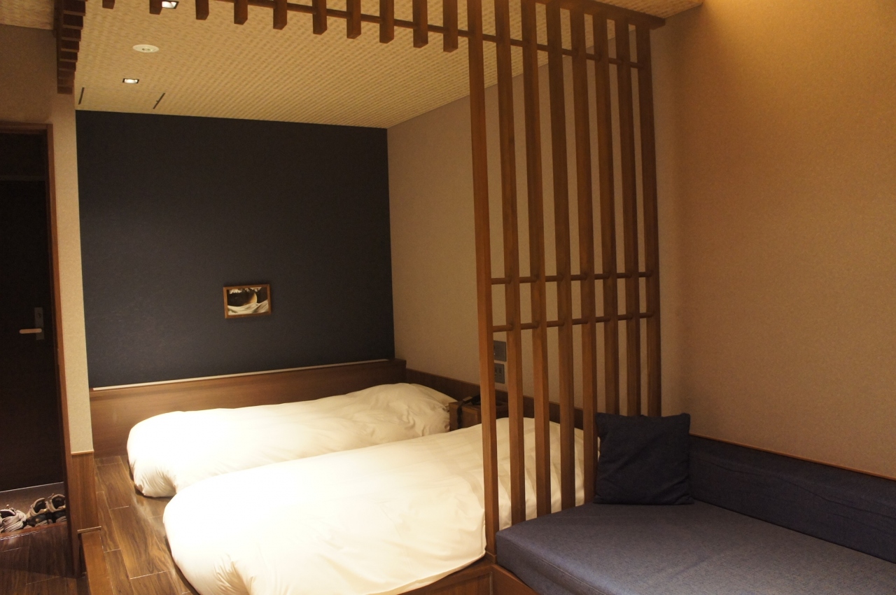 「プレミアム」と名乗るだけあって、ちょっと広め。ビジネス用途のためか、室内にデスクがあったので、出張だったら便利なんだろうなと思いました。
