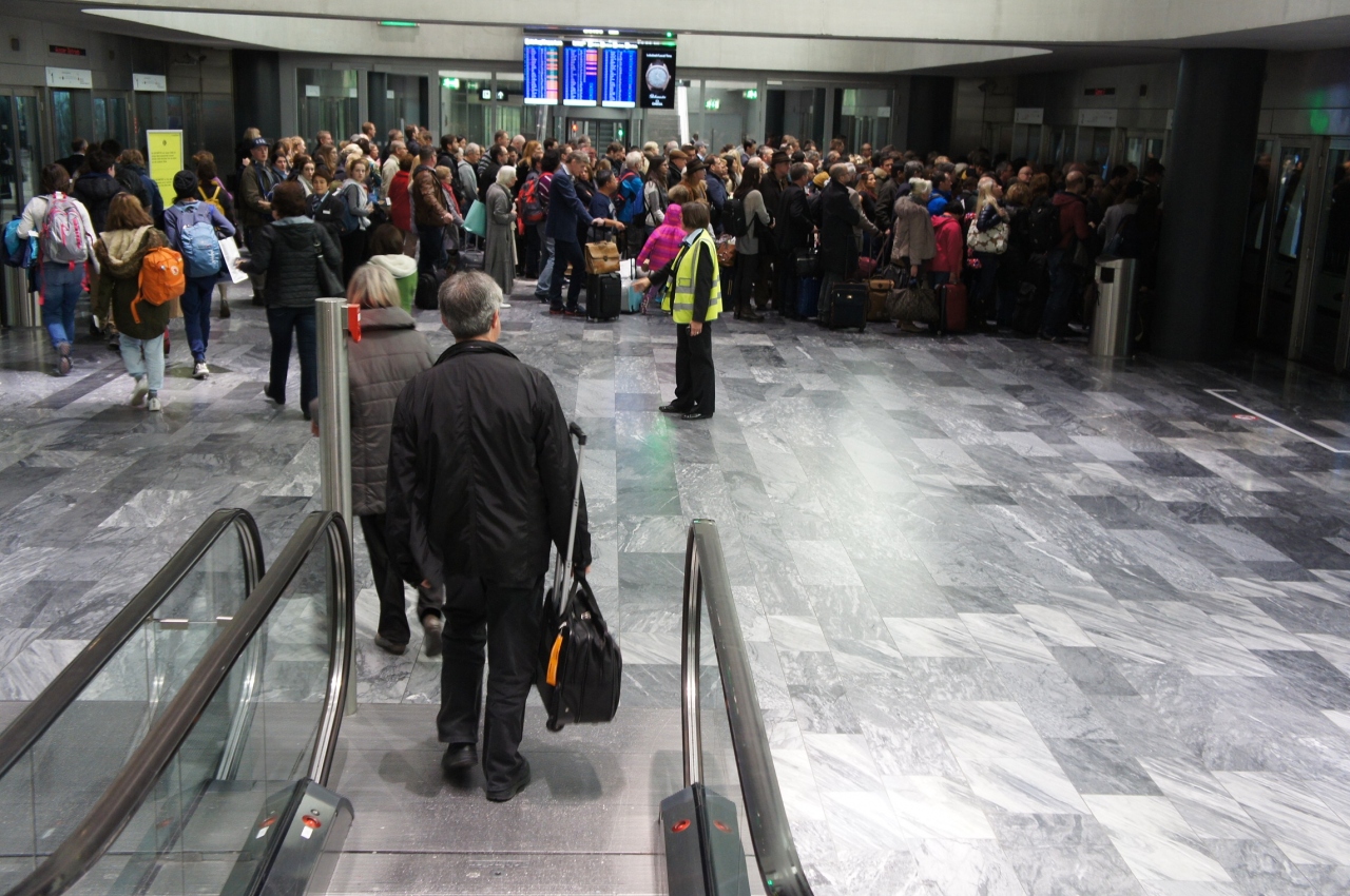 スイス航空に乗りたくてチューリッヒ空港での乗り換えを選択。乗り継ぎ時間が短いとかなり不便でした。ターミナルが遠いのはもちろん、移動のモノレール(5分おき!)がギューギュー、、、朝の通勤よりひどいかも(>_<)ものすごい行列で、私たちは初便にのれず2便目に乗車、それでも乗り残していました。ただ、飛行機が遅れ国際便出発まで20分ほどしかなくなってしまった人たち用には飛行機から出発ターミナルへ直通(?)のバスが手配されていました。