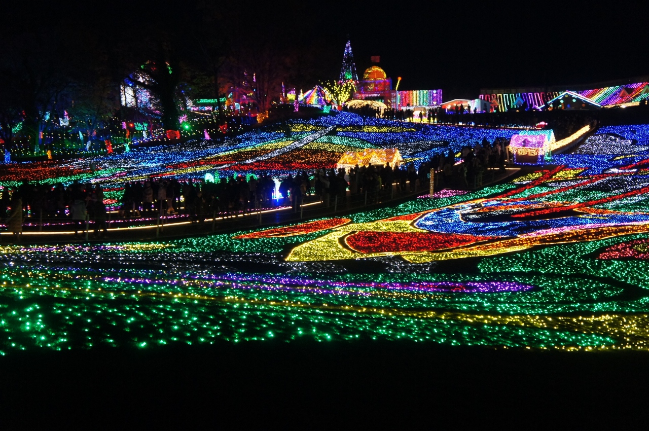 イルミネーションは動きは少ないけど、広くて見ごたえありますね。地上絵になっているので、向きが違うとなんの絵だかわからないのがちょっぴりご愛敬ですが、きれいで楽しめました。- 旅行時期
