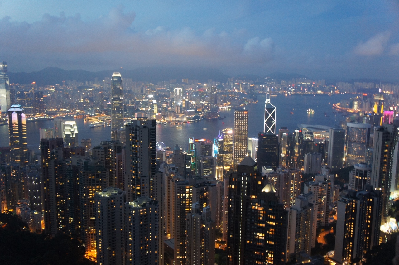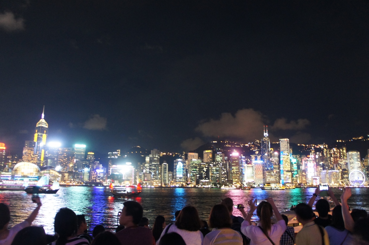 ビクトリア湾をはさんだ対岸のビル群のライトが、音に合わせて点滅して、香港ならではの、絶対に一度は見るべきショー