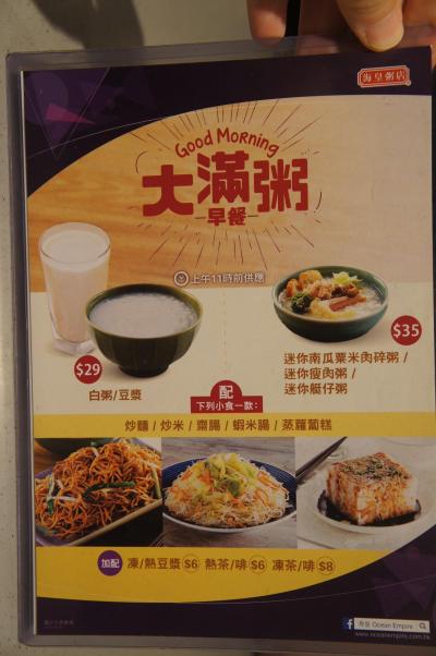 外国語メニューは高価なものばかり紹介されているので、店頭に大きく掲示のある、地元民向け朝食セット$29~35から選ぶのがおすすめ。写真付きなので指さしでOK