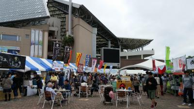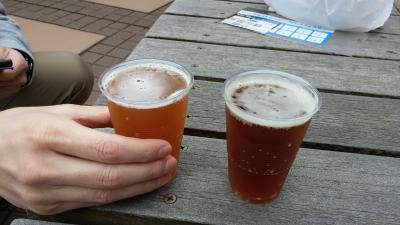 テント前は地元アイドルがでてバズーカ砲カメラ抱えた方々がいて、椅子もテーブルも全然少なく、ビールは遠くのベンチに座るか階段(前夜は雨)に座るか立ち飲み。フードは地元食材がテーマでつまみの種類が少なく、コンビニで買って行けば良かったなという感じでした。