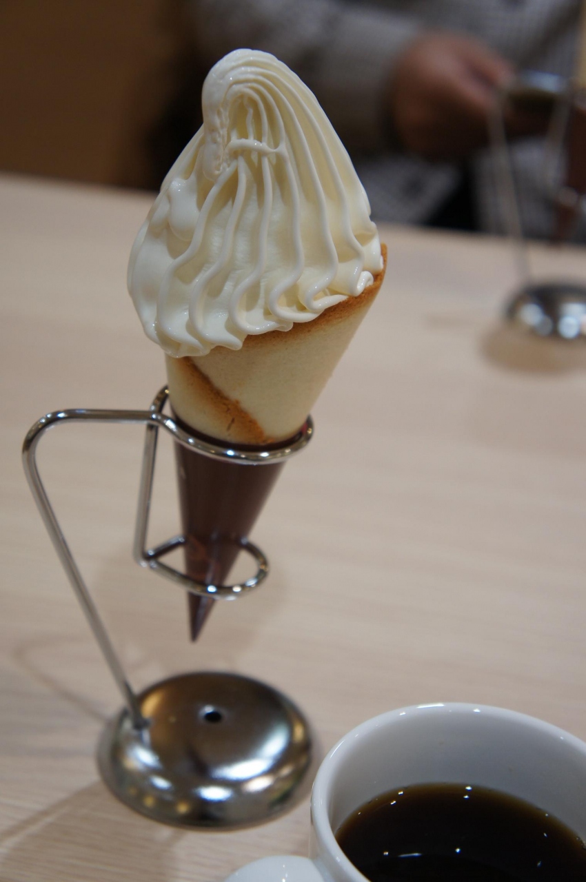 ソフトクリームは一人1個のみ、お店の方が作ってくれます。ソフトクリーム本体もですが、ラングドシャのコーンが美味しかった♪- 旅行時期