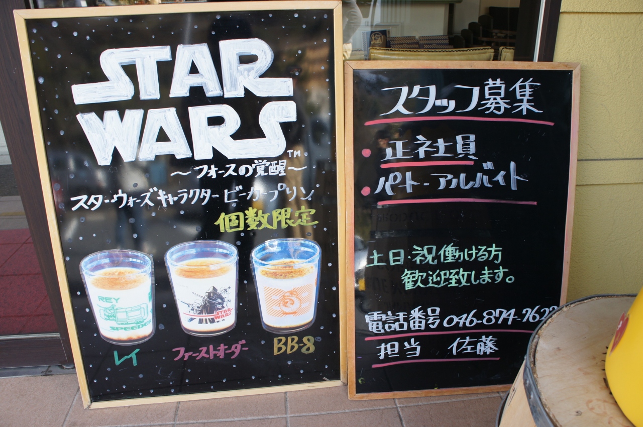 葉山店は水曜定休でしたが、こちらのお店は無休のようです。バナナプリンとカスタードと王様プリンGET。いまだけ限定のスターウォーズビーカーがあり、私たちは興味ないので買わなかったけど他のお客様には人気のよう。お好きな方はどうぞ。- 旅行時期