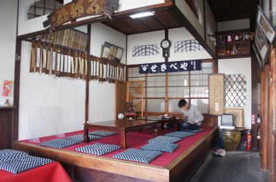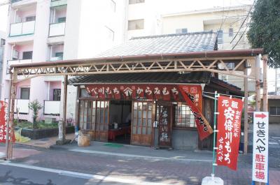 安倍川そばにある安倍川餅の老舗。店内のイートインスペースは赤い絨毯に座布団、レトロな風情漂うお店です。古い報道写真なんかも展示があって、時間があればじっくり見るのも良いです。